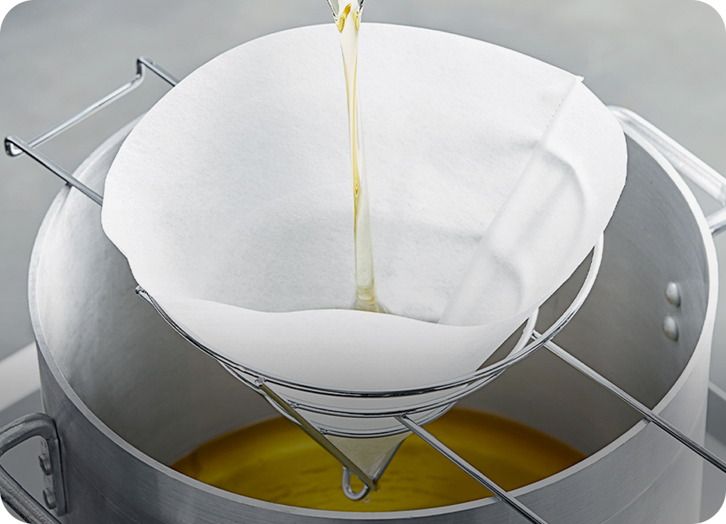 Matolja representerar en betydande driftskostnad för storskalig catering. Frekvent utbyte av nedbruten olja ökar inte bara kostnaderna utan genererar också miljöavfall. Matoljefilterpapper tillåter cateringfirman att förlänga användbarheten av olja genom att ta bort matpartiklar, kolavlagringar och andra föroreningar som påskyndar oljenedbrytningen.